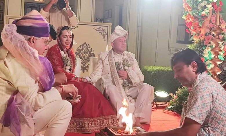 राजस्थान का जोधपुर एक बार फिर विदेशी मेहमानों की शाही शादी का गवाह बना. इस बार यहां यूक्रेन के रहने वाले एक जोड़े ने भारतीय तौर-तरीकों से प्रभावित होकर हिंदू वैदिक रीति-रिवाजों से सात फेरे लिए. यह कपल पिछले तीन-चार साल से लिव-इन रिलेशनशिप में रह रहा था, लेकिन भारतीय परंपराओं से प्रभावित होकर उन्होंने पारंपरिक विवाह करने का फैसला लिया.
