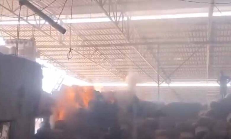 अनाज रखने के एक निजी गोदाम में लगी भीषण आग
