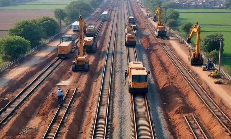 तकनीकी प्रगति: सागौर-धार खंड में ट्रैक बिछाने के लिए मशीन का उपयोग किया जा रहा है।