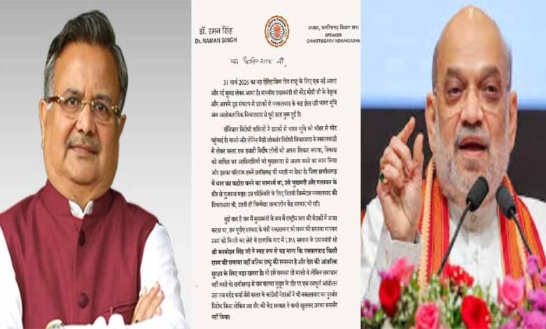 आज विधानसभा अध्यक्ष और पूर्व मुख्यमंत्री डॉ रमन सिंह ने केंद्रीय गृहमंत्री अमित शाह को पत्र लिखकर नक्सलवाद से मुक्ति पर जताया उनका आभार उन्होंने पत्र में लिखा कि 31 मार्च 2026 का यह ऐतिहासिक दिन राष्ट्र के लिए एक नई आशा और नई सुबह लेकर आया है। माननीय प्रधानमंत्री नरेंद्र मोदी जी के नेतृत्व और आपके दृढ़ संकल्प से दशकों से नक्सलवाद के कष्ट झेल रही भारत भूमि अब अलोकतांत्रिक विचारधारा से पूरी तरह मुक्त हुई है। संविधान विरोधी शक्तियों ने दशकों से भारत भूमि को भीतर से चोट पहुंचाई है। माओ और लेनिन जैसी लोकतंत्र विरोधी विचारधारा ने नक्सलबाड़ी से लेकर बस्तर तक हजारों निर्दोष लोगों को अपना शिकार बनाया, विकास को बाधित कर आदिवासियों को मुख्यधारा से अलग करने का काम किया और इसका परिणाम हमनें छत्तीसगढ़ की धरती पर देखा है। जिस छत्तीसगढ़ में धान का कटोरा बनने का सामर्थ्य था, उसे भुखमरी और पलायन के दौर से गुजरना पड़ा। इस परिस्थिति के लिए जितनी जिम्मेदार नक्सलवाद की विचारधारा थी, उतनी ही जिम्मेदार तत्कालीन केंद्र सरकार भी रही।