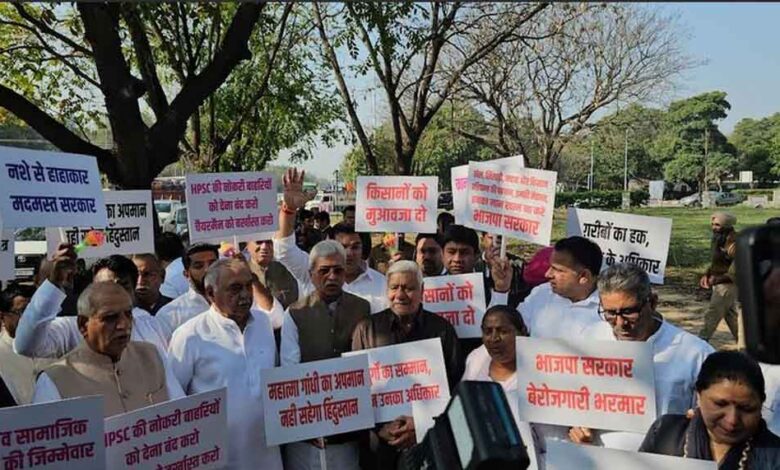 कांग्रेस विधायक आज बीजेपी सरकार के खिलाफ मोर्चा निकालते हुए विधानसभा पहुंचे। सभी विधायकों ने नेता प्रतिपक्ष एवं पूर्व मुख्यमंत्री भूपेंद्र सिंह हुड्डा के नेतृत्व में विधानसभा का घेराव किया। हाईकोर्ट चौक से विधानसभा तक निकाले गए इस रोष प्रदर्शन में कांग्रेस प्रदेश अध्यक्ष राव नरेंद्र सिंह भी मौजूद रहे। प्रदर्शन के दौरान कांग्रेस विधायकों ने एक हाथ में विभिन्न समस्याओं पर लिखी तख्तियां और दूसरे हाथ में झुनझुना लेकर नारेबाजी की। इस प्रतीकात्मक विरोध के माध्यम से कांग्रेस ने स्पष्ट संदेश दिया कि हरियाणा की जनता तमाम गंभीर समस्याओं से जूझ रही है, जबकि बीजेपी सरकार केवल झूठे वादों और खोखले दावों का झुंझना बजाने में व्यस्त है। कांग्रेस विधायकों ने सरकार से इन सभी मुद्दों पर तत्काल कार्रवाई की मांग की और चेतावनी दी कि यदि जनता की समस्याओं का समाधान नहीं किया गया तो आंदोलन और तेज होगा। हुड्डा ने कहा कि कांग्रेस एक जिम्मेदार विपक्ष के नाते जनता के मुद्दों को सड़क से लेकर सदन तक हर मंच पर उठाएगी। बीजेपी जितना अपनी जिम्मेदारी से भागेगी, कांग्रेस उतने पुरजोर तरीके से जनता की पैरवी करेगी। आखिकार सरकार को जवाबदेह बनना ही पड़ेगा।