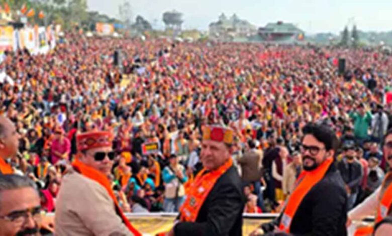 जोरावर स्टेडियम भाजपा समर्थकों से खचाखच भरा रहा। भाजपा नेताओं ने इसे हिमाचल में कांग्रेस की “नकम्मी और भ्रष्ट” सरकार के खिलाफ जनाक्रोश बताया।