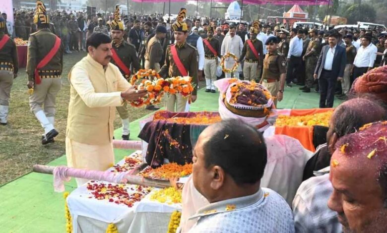 शहीद इंस्पेक्टर आशीष शर्मा को अंतिम विदाई, CM मोहन यादव ने दिया कंधा; भाई को सब इंस्पेक्टर बनाने की घोषणा
