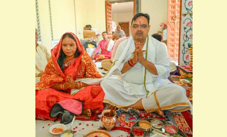 मुख्यमंत्री भजनलाल शर्मा ने रविवार को चैत्र नवरात्र के प्रथम दिन मुख्यमंत्री निवास में विधिवत पूजा-अर्चना कर घट स्थापना की तथा राज राजेश्वरी मंदिर में सपरिवार मां दुर्गा की आराधना की।