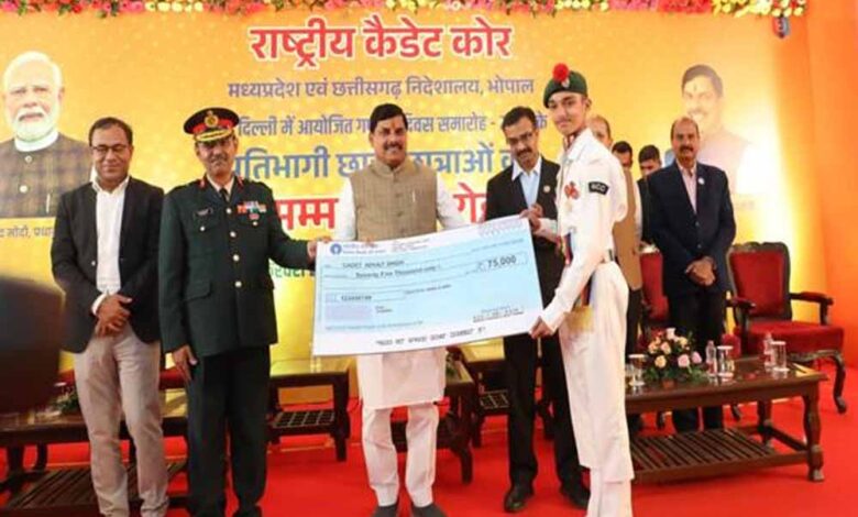 मुख्यमंत्री डॉ. यादव ने नई दिल्ली में हुए गणतंत्र दिवस शिविर (आरडीसी) की बेस्ट एनसीसी कैडेट्स प्रतियोगिता में एक स्वर्ण एवं 2 रजत पदक जीतने पर मध्यप्रदेश-छत्तीसगढ़ निदेशालय को बधाई दी। इस वर्ष के गणतंत्र दिवस शिविर में देशभर के 17 निदेशालयों के कैडेट्स शामिल हुए और मध्यप्रदेश-छत्तीसगढ़ निदेशालय ने अब तक का सर्वश्रेष्ठ प्रदर्शन करते हुए इसमें तीसरा स्थान प्राप्त किया है। मुख्यमंत्री ने एनसीसी गणतंत्र दिवस टुकड़ी को सम्मानित किया एवं इस उपलब्धि के लिए कैडेट्स, प्रशिक्षक एवं अधिकारियों की निष्ठा, दृढ़ता और सतत प्रयासों की सराहना की।