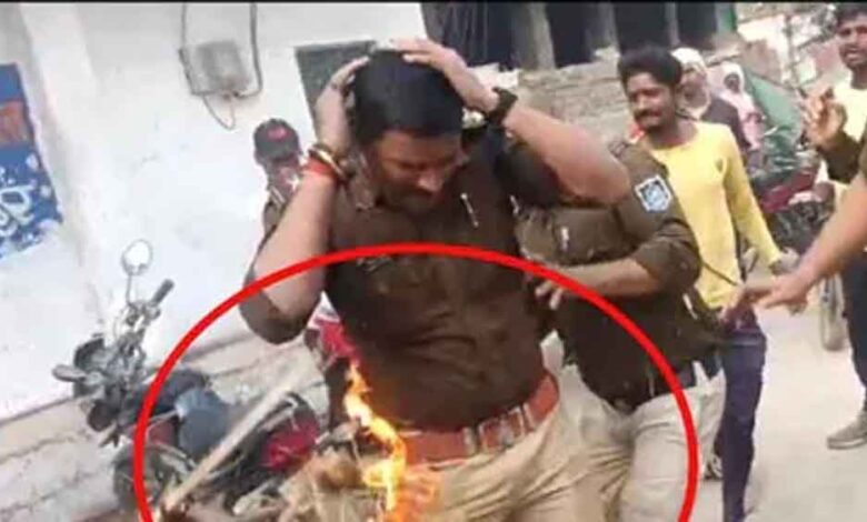 पुतला छीनते वक्त आग में झुलसा पुलिस अफसर