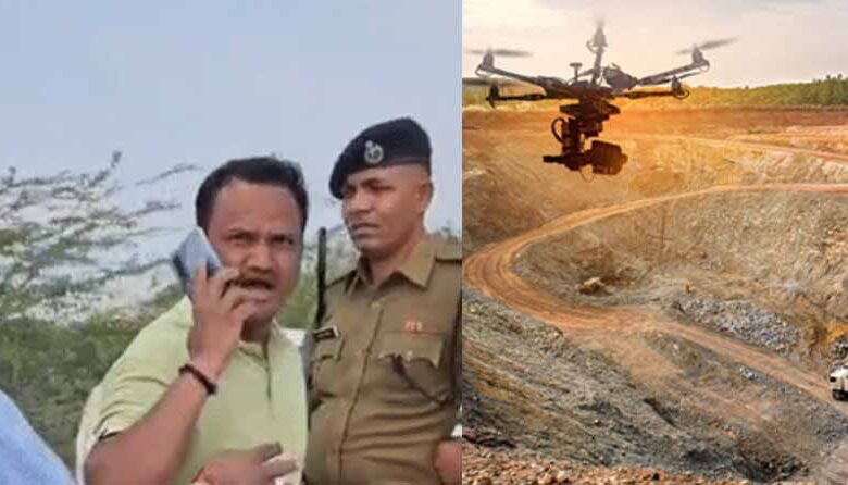 माइन धारकों का ड्रोन सर्वे करने पहुंची थी टीम