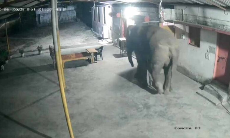 रिहायसी इलाके में हाथी का आतंक: दंतेल ने तोड़ा गेट, घर में घुसने की कोशिश