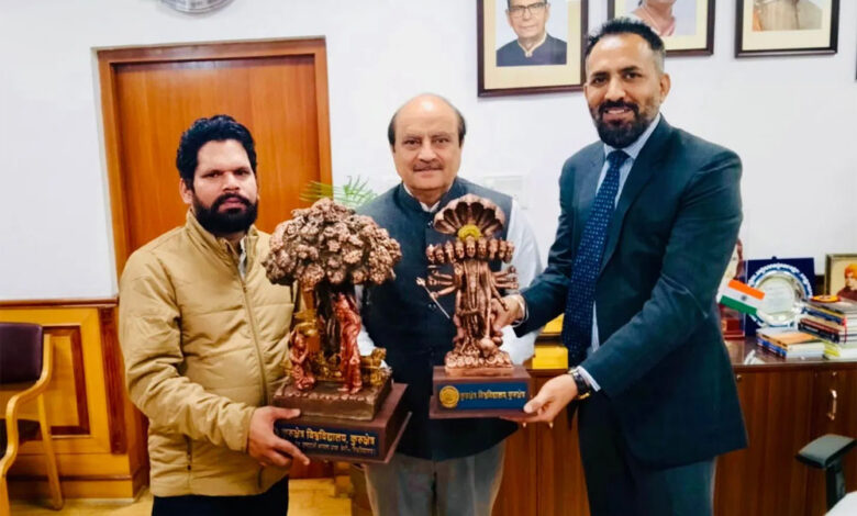 कुरुक्षेत्र विश्वविद्यालय के ललित कला विभाग ने भगवद गीता की शिक्षाओं से प्रेरित दो भव्य स्मारक मूर्तियां तैयार की हैं। इनमें से एक मूर्ति भगवान कृष्ण के विराट रूप को दर्शाती है, जबकि दूसरी मूर्ति उस ऐतिहासिक दृश्य को सजीव करती है, जिसमें भगवान कृष्ण रथ पर अर्जुन को गीता का उपदेश देते हुए दिखाई देते हैं।