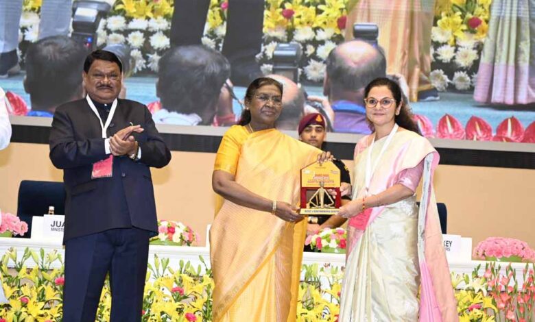 देश की राजधानी नई दिल्ली के विज्ञान भवन में आयोजित ‘राष्ट्रीय कॉन्क्लेव ऑन आदि कर्मयोगी अभियान’ में छत्तीगसढ के कोरिया जिले ने एक बार फिर अपनी विकास यात्रा से राष्ट्रीय स्तर पर पहचान बनाई है। भारत सरकार के जनजातीय कार्य मंत्रालय द्वारा आयोजित इस भव्य समारोह में राष्ट्रपति द्रौपदी मुर्मू ने धरती आबा जनजाति ग्राम उत्कर्ष अभियान में उत्कृष्ट कार्यों के लिए कोरिया जिले की कलेक्टर चंदन त्रिपाठी को सम्मानित किया। इस अवसर पर केंद्रीय जनजातीय कार्य मंत्री जुएल ओराम एवं राज्यमंत्री दुर्गा दास उइके भी उपस्थित रहे। कार्यक्रम में छत्तीसगढ़ शासन के प्रमुख सचिव सोनमणि बोरा को भी राज्य स्तर पर उत्कृष्ट प्रदर्शन के लिए राष्ट्रपति के हाथों सम्मान प्राप्त हुआ।