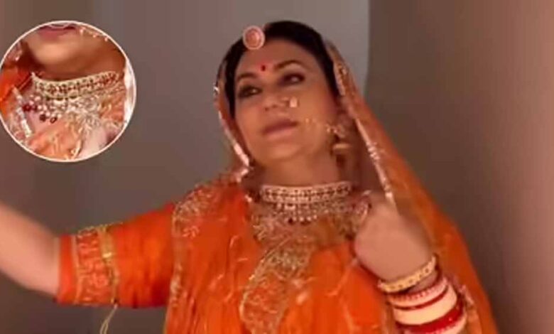उन्होंने गले में हैवी नेकलेस, हाथों में चूड़ियां और कड़े, माथे पर लाल बिंदी और नाक में नथ पहनी हुई है, जो उनकी शाही और रॉयल छवि को निखारता है।