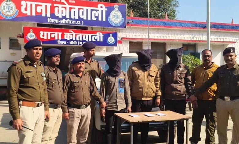 पुलिस ने ​देवेन्द्र उर्फ लाला यादव 26 वर्ष निवासी बाणगंगा, रीवा, सुधीश यादव 21 बर्ष बाणगंगा रीवा, ​दुर्गेश शर्मा 32 वर्ष निवासी रामगढ़, जिला मैहर को गिरफ्तार कर जेल भेज दिया है।