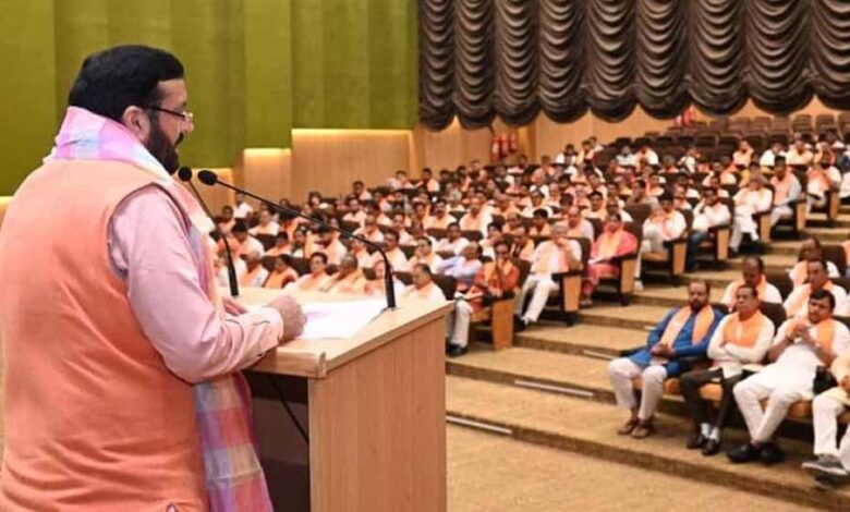 पंचकूला स्थित भाजपा कार्यालय पंचकमल में शनिवार को मुख्यमंत्री नायब सैनी आत्मनिर्भर भारत संकल्प कार्यशाला को संबोधित करते हुए। –