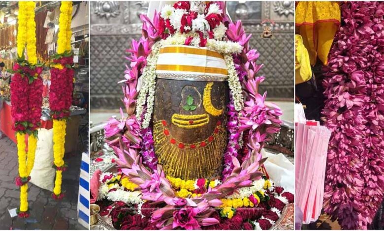 महाकाल मंदिर में इन दिनों भगवान महाकाल को फूलों की बड़ी व भारी माला पहनाई जा रही है। प्रतिदिन होने वाली पांच आरती के अलावा दिनभर भक्तों की ओर से लाई जाने वाली मालाएं भगवान को अर्पित की जा रही है। हालांकि ज्योतिर्लिंग क्षरण मामले में सुप्रीम कोर्ट द्वारा गठित एक्सपर्ट कमेटी ने भगवान को भारी फूल माला तथा अधिक मात्रा में पुष्प अर्पित नहीं करने का सुझाव दिया है। समय-समय पर मंदिर समिति भी एक्सपर्ट कमेटी के सुझावों पर अमल करने का दावा करती रही है, मगर हकीकत कुछ और ही कहानी बयां कर रही है।