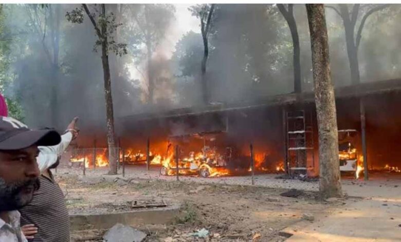 जीरकपुर स्थित महेंद्र चौधरी जूलॉजिकल पार्क (छतबीड़ जू) में मंगलवार सुबह उस समय अफरातफरी मच गई जब पर्यटकों को घुमाने के लिए उपयोग में आने वाली इलेक्ट्रॉनिक फेरी गाड़ियों में अचानक आग लग गई। कुछ ही मिनटों में आग ने भयावह रूप ले लिया और 19 ई-वाहन पूरी तरह जलकर राख हो गए।
