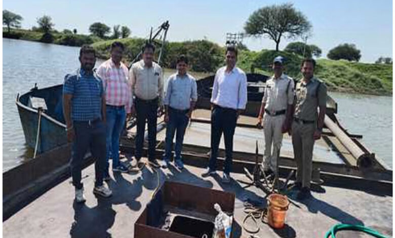 नीमच में खनिज विभाग की कार्रवाई, चार फाइटर मशीन, चार नाव, एक छोटा जहाज और रेत से भरी दो ट्रैक्टर-ट्रॉली जब्त