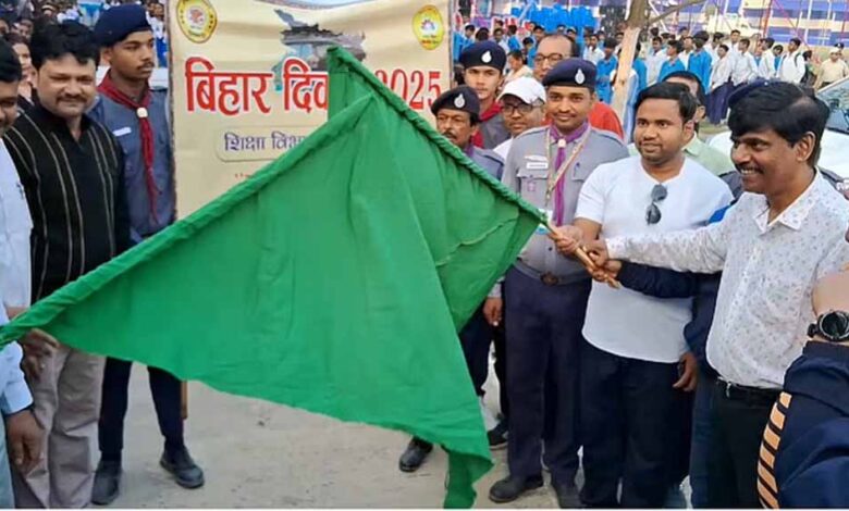 बिहार दिवस के अवसर पर शहर में स्कूली बच्चों ने प्रभात फेरी निकाली