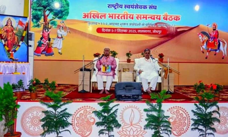 राष्ट्रीय स्वयंसेवक संघ की तीन दिवसीय अखिल भारतीय समन्वय बैठक जोधपुर में जारी है। आज बैठक के दूसरे दिन विभिन्न अहम विषयों पर चर्चा होनी है। गौरतलब है कि कल से शुरू हुई बैठक में राष्ट्रीय शिक्षा नीति 2020 के प्रभावी क्रियान्वयन, जनजातीय क्षेत्रों में सामाजिक विकास और पंच परिवर्तन पर विशेष सत्र आयोजित किए गए थे।