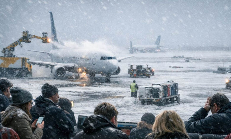 खतरनाक मौसम ग्रेट लेक्स से लेकर नॉर्थईस्ट तक फैल गया, जिससे बड़े एयरपोर्ट्स पर कामकाज बाधित हुआ है.