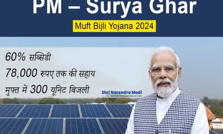 योजना में 3 किलोवॉट के सौर संयन्त्र लगाने पर 78 हजार की मिलेगी सब्सिडी