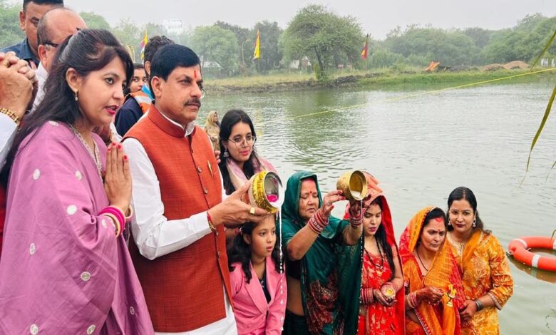 सीएम उज्जैन पहुंचे छठ के आखिरी दिन, विक्रम सरोवर घाट पर सूर्य को अर्घ्य अर्पित