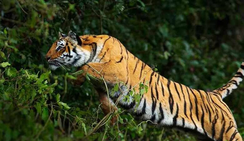 छत्तीसगढ़–महाराष्ट्र सीमा पर बाघ का आतंक: दिन-दहाड़े मवेशी पर हमला, ग्रामीण पेड़ पर चढ़कर बची जान