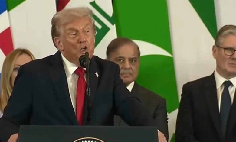 शिखर सम्मेलन में बोलते हुए पाकिस्तान के प्रधानमंत्री शहबाज शरीफ ने कहा कि मध्य पूर्व में शांति स्थापित होने का श्रेय राष्ट्रपति ट्रंप और उनकी टीम को जाता है। उन्होंने कहा कि पाकिस्तान ने पहले भी ट्रंप को नोबेल शांति पुरस्कार के लिए नामित किया था और अब वे उन्हें दोबारा नामित करना चाहते हैं।